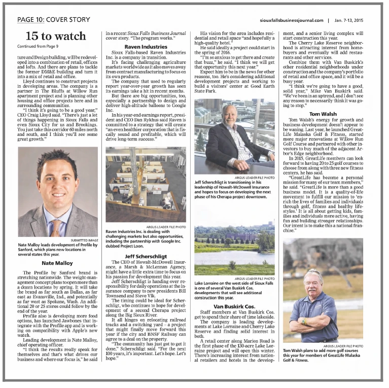 Van Buskirk Companies was excited to be featured in a Sioux Falls Business Journal article on a collection of 15 individuals, organizations, and businesses that would be worth watching in 2015.